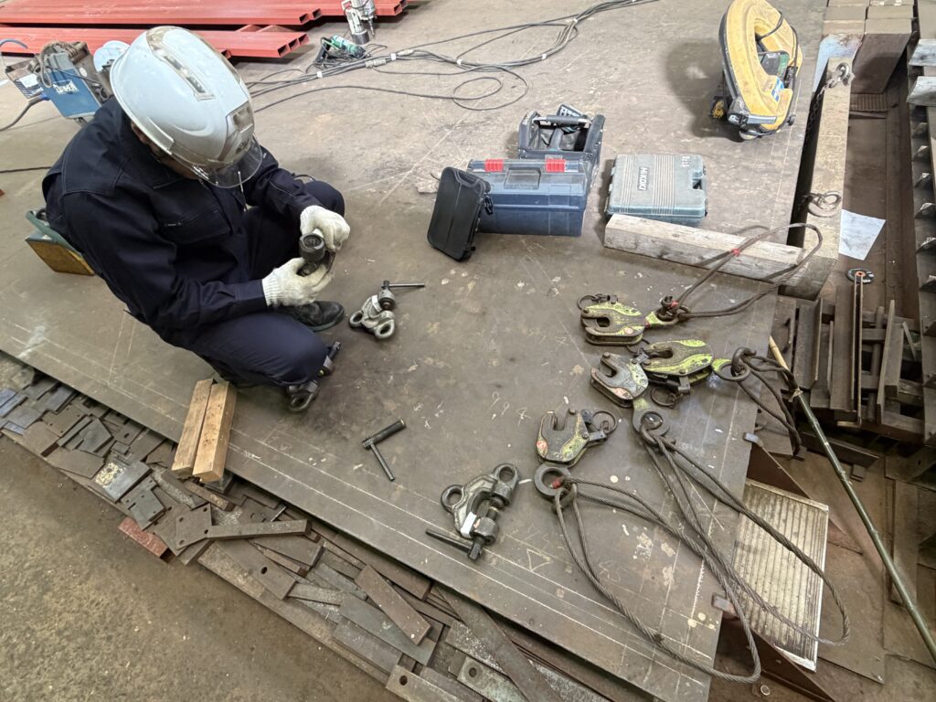 イーグルクランプは重量物を取り扱う場面で使うため、もし使用中に破損したら大事故につながる恐れがあります。そのため毎年メーカーの方に点検してもらってます。今年の点検では8個中2つ買い替えを推奨されました。安全のための投資は何よりも大切ですので、見積もりを早速お願いしました。